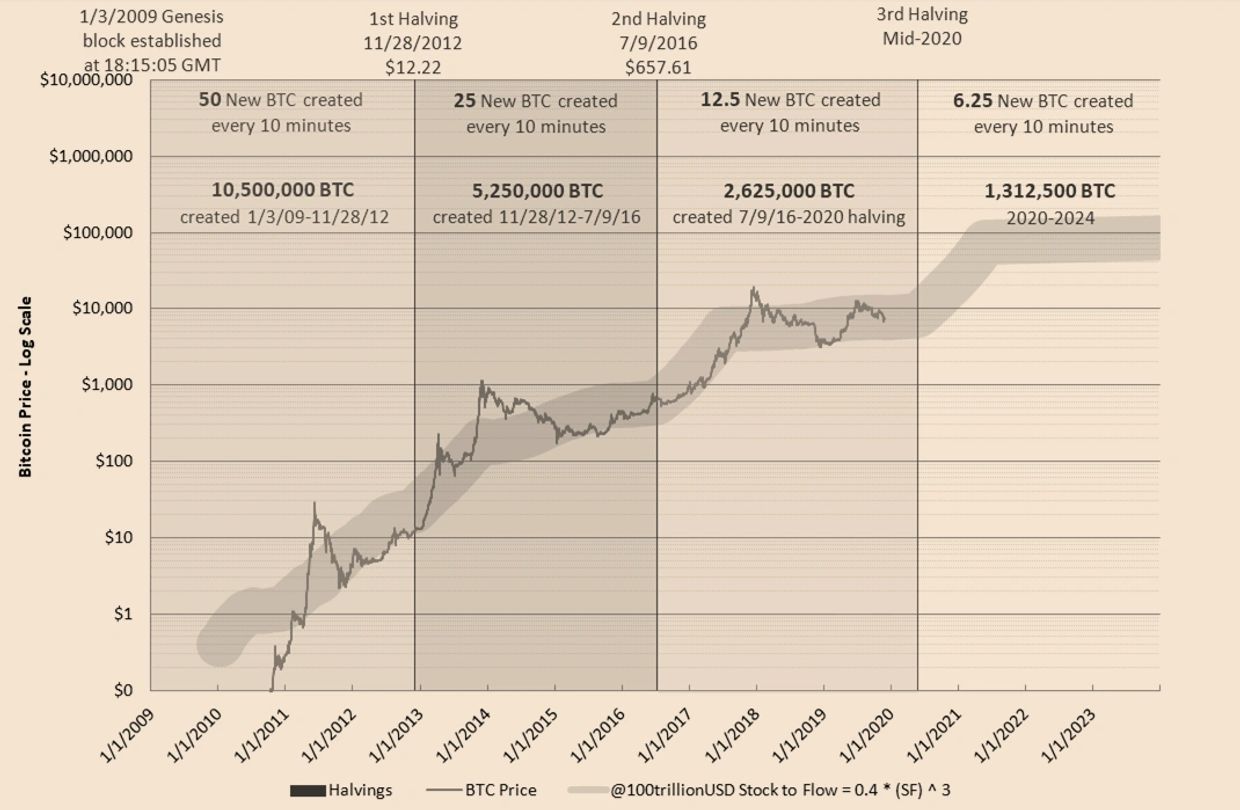 As shown in the chart above, despite the peaks and troughs, the Bitcoin price has been rising. This is because there is a limited supply: only 21 million Bitcoins will ever be created. Initially in 2009, 50 Bitcoins were created every 10 minutes. The rate at which new Bitcoins are created halves every four years until all 21 million Bitcoins have been generated.